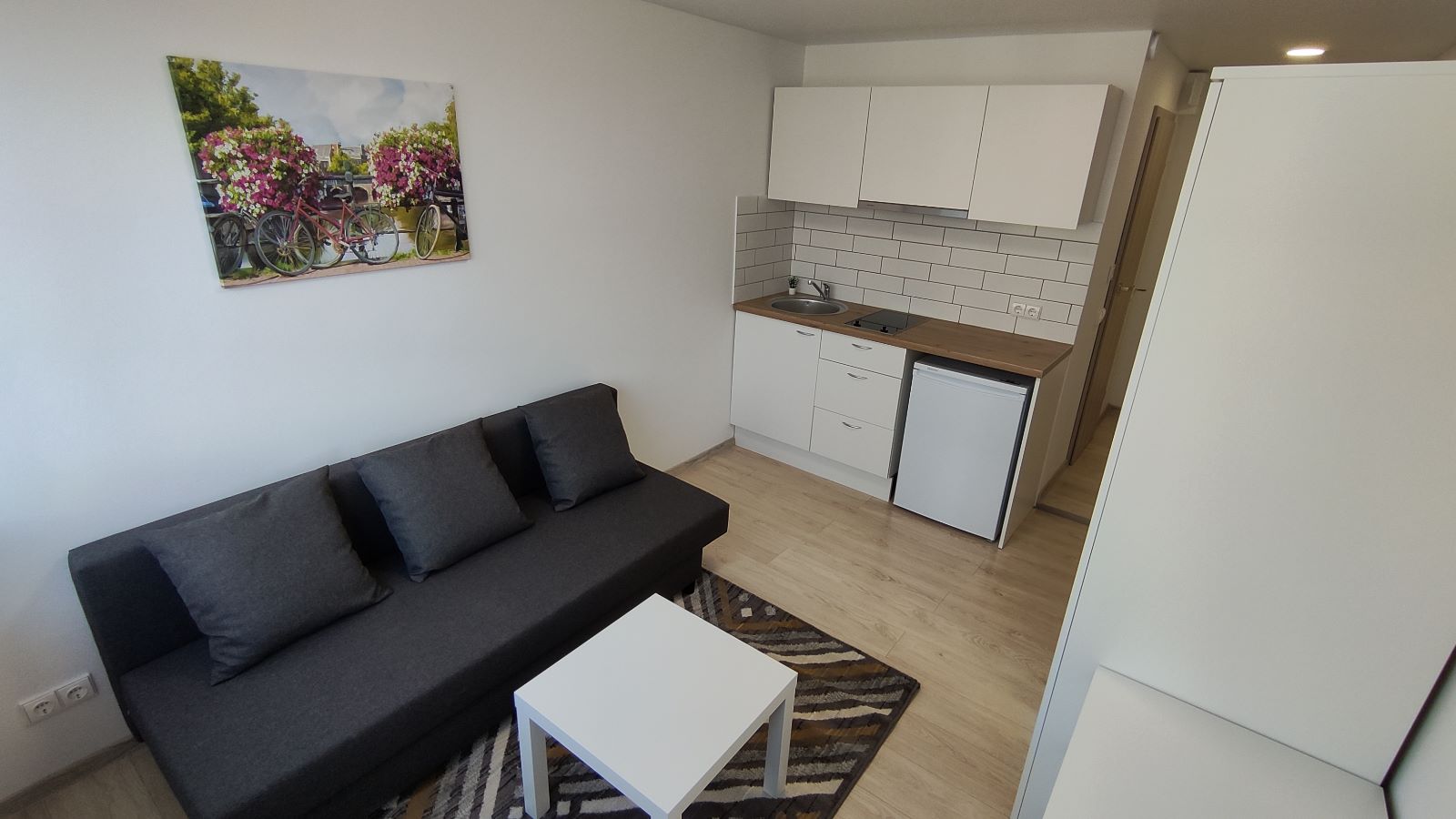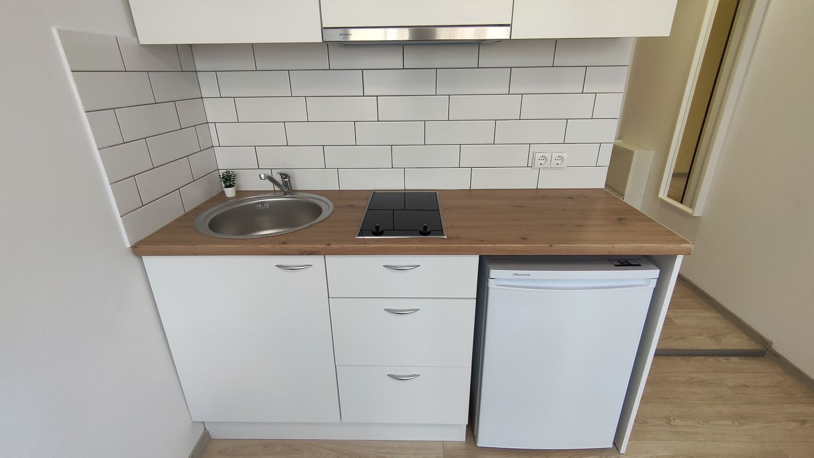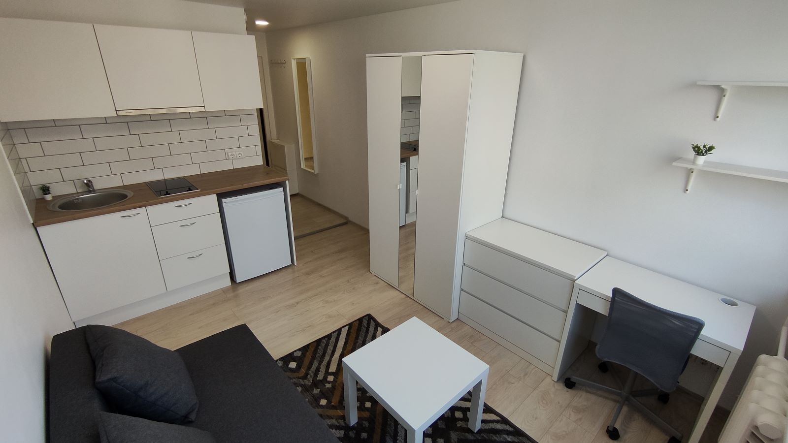 Įrengta studija, integruota į 4 butų komplektą trečiame aukšte. Pilnai suremontuotas naujas studijos tipo butas.