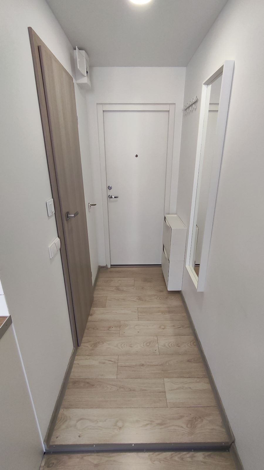Visas butas įrengtas aukštos kokybės plaukiojančiomis grindimis, o kambaryje yra kilimėlis geresnei izoliacijai. Batų saugykla ir viso dydžio veidrodis koridoriuje