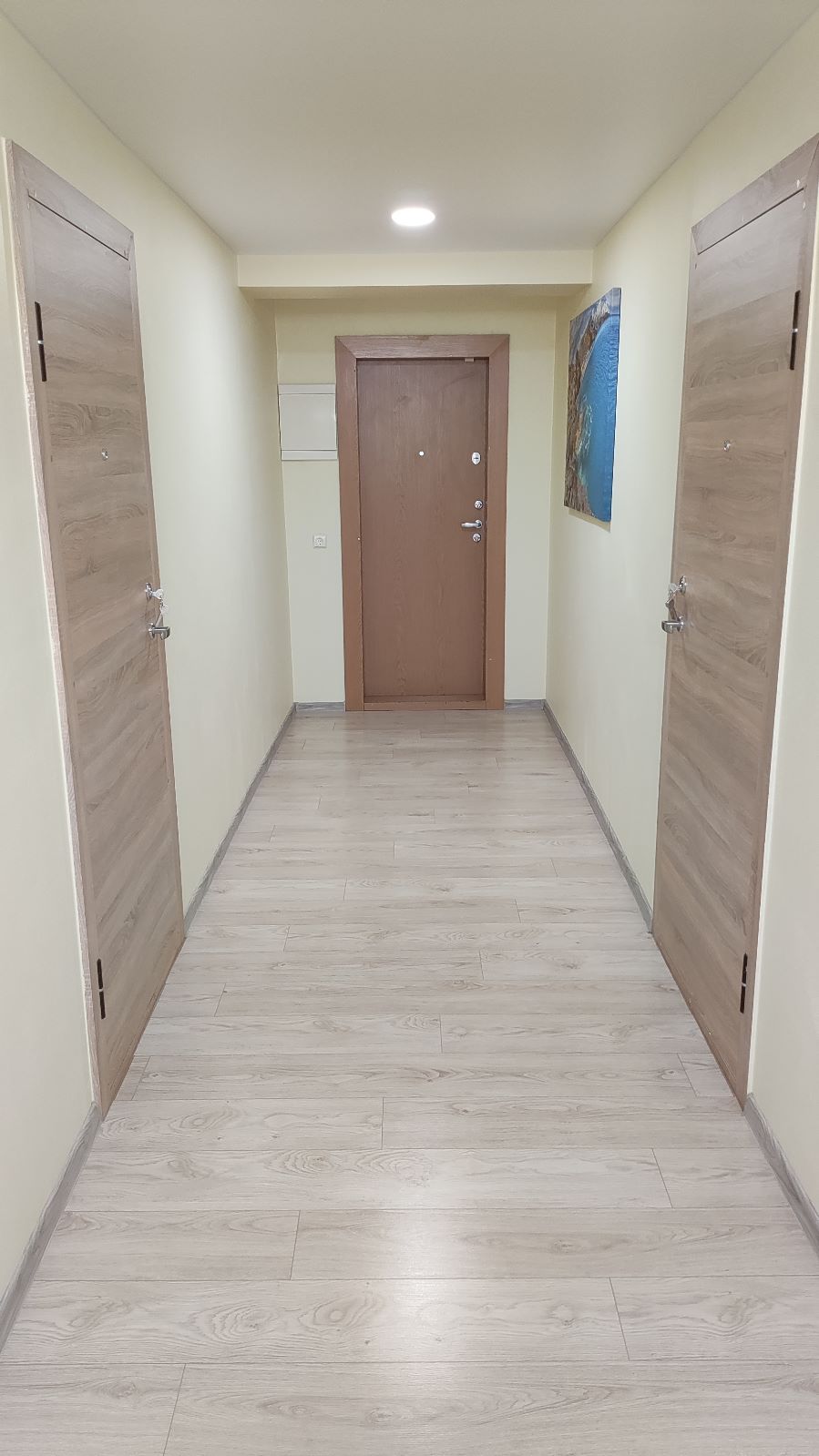 Вся квартира выполнена в высоком стандарте с плавающим полом, а в комнате есть ковер для лучшей изоляции. Место для хранения обуви и зеркало в полный рост в коридоре